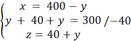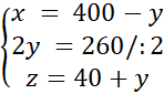 x = 400 – y = 400 – 130 = 270