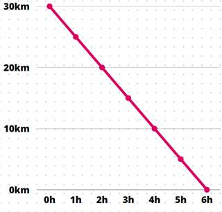 W tym zadaniu musisz wykonać wykres ilustrujący odległość piechura od celu w zależności od czasu od momentu rozpoczęcia marszu, jeśli wiadomo, że piechur, który porusza się ze średnią prędkością 5 km/h, ma do pokonania 30 km.