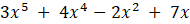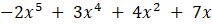 Napisz dowolne wielomiany o współczynnikach 0, -2, 3, 4, 7.