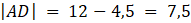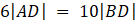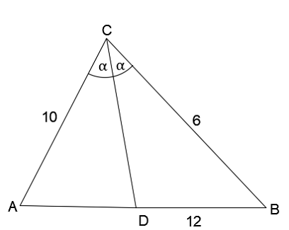 Dany jest trójkąt o bokach |AB| = 12 | BC| + | = 6 |AC| = 10. Określ długość odcinka AD, jeśli dwusieczna przecina bok AB w punkcie D