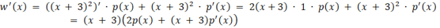 Z powyższego zapisu pochodnej wielomianu w wnioskujemy, że jest ona podzielna przez dwumian x + 3.