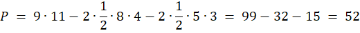 Teraz zauważ, że jeżeli wykresy funkcji f i h są bokami czworokąta, to ten czworokąt jest równoległobokiem i jego pole można policzyć jako różnicę pola prostokąta i pola czterech trójkątów, zatem: