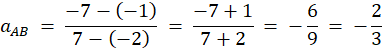 Wyznacz prostą zawierającą bok AB. Wykorzystaj wzór na współczynnik kierunkowy prostej