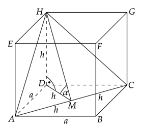 Wprowadź oznaczenia pomocnicze. Skorzystaj z tego, że przekątna podstawy jest dwa razy dłuższa od wysokości graniastosłupa, więc połowa przekątnej podstawy jest równa jego wysokości.