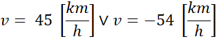 Który rozwiązujemy metodą podstawienia – z jednego z równań wyznaczamy t i wstawiamy do drugiego. Otrzymujemy równanie kwadratowe ze względu na prędkość i otrzymujemy wyniki – jeden dodatni i drugi ujemny, co przez fakt, że prędkość jest wielkością wektorową, mówi nam, że pociągi poruszają się z przeciwnymi zwrotami (jadą w swoim kierunku).