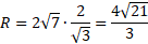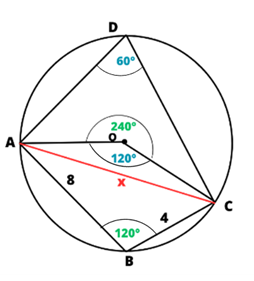 Skorzystaj z twierdzenia cosinusów w celu wyznaczenia odcinka AC. Oblicz promień okręgu z twierdzenia sinusów.