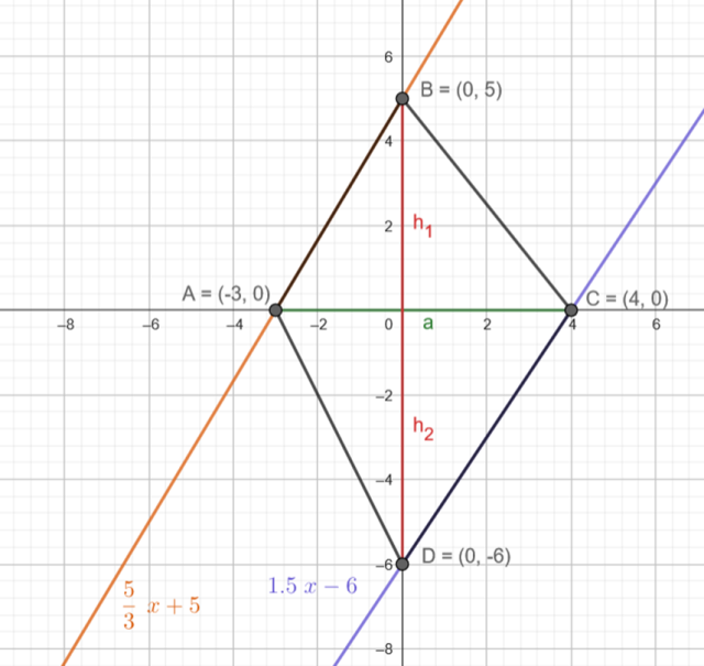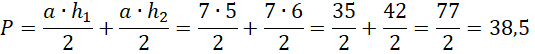 Zauważ, że powstała figura składa się z dwóch trójkątów o takiej samej podstawie. Oblicz więc sumę ich pól, ale obliczyć pole powstałej figury.