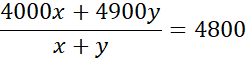 Ustal, jaki procent wszystkich pracowników stanowią pracownicy z krótszym stażem, jeśli w pewnej firmie średnia płaca wynosi 4 800 zł, przy czym średnia płaca pracowników ze stażem nie dłuższym niż 5 lat wynosi 4000 zł, natomiast tych ze stażem dłuższym - 4900 zł.