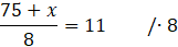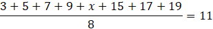 Oblicz x dla którego średnia arytmetyczna liczb 3, 5, 7, 9, x, 15, 17, 19 jest równa 11.
