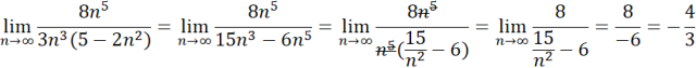 Jeśli spotkamy się z ułamkiem tak, jak w tym przypadku, to należy wyłączyć z licznika i mianownika najwyższe potęgi liczby n. Następnie musisz skrócić wyłączone n. Dalej trzeba sprawdzić, ile wynosi granica z każdego składnika w liczniku i mianowniku.