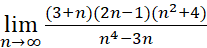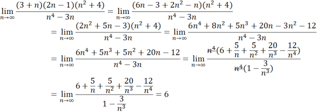 Jeśli spotkamy się z ułamkiem tak, jak w tym przypadku, to należy wyłączyć z licznika i mianownika najwyższe potęgi liczby n. Następnie musisz skrócić wyłączone n. Dalej trzeba sprawdzić, ile wynosi granica z każdego składnika w liczniku i mianowniku.
