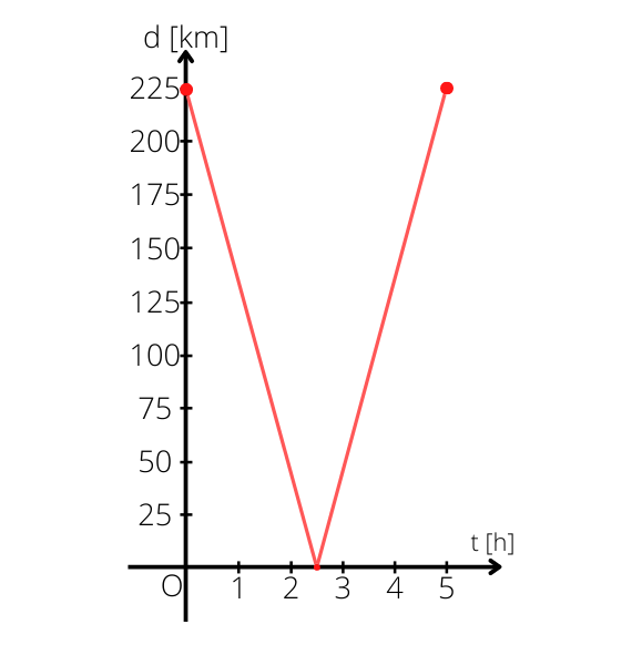 Miasto B znajduje się dokładnie na środku trasy, więc pociąg zajedzie tam w połowie czasu całego przejazdu 5 : 2 = 2,5