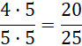 Skoro różnica między mianownikiem i licznikiem przed rozszerzeniem to 5 – 4 = 1, a po rozszerzeniu to 25 – 20 = 5, to mniejszą z różnic należy pomnożyć przez 5, by dostać 1 · 5 = 5.