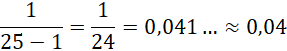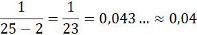 Odejmuj od mianownika kolejne liczby naturalne, a następnie znajdź przybliżenie do części setnych otrzymanych ułamków. Powtarzaj to, dopóki przybliżenie będzie równe 0,04. Weź największą z liczb, która spełnia warunki zadania.