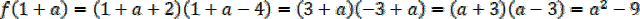 Udowodnij, że prawa strona równa się lewej. Oblicz f(1 – a) i f(1 + a) i zauważ, że obie wartości funkcji równe są