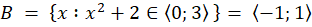 Zapisz warunek w definicji zbioru jako nierówność i rozwiąż, dla jakich x jest ona spełniona. Zamień nierówność z powrotem na przedział.