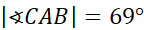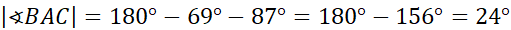 Wskaż najdłuższy i najkrótszy bok trójkąta ABC, wiedząc, że dane są w nim kąty |∢CAB| = 69°, |∢BCA| = 87°.