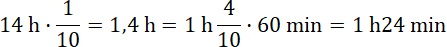Zapisz podany procent jako ułamek zwykły i oblicz część maksymalnego czasu przy 100% baterii, na jaką pozwala 40% baterii. Wykonaj mnożenie odczytanego z ilustracji czasu i skróconego ułamka. Zamień czas w godzinach na czas w godzinach i minutach.
