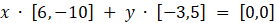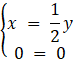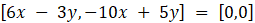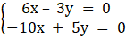 Z ostatniej równości wynika, że 6x – 3y = 0 oraz -10x + 5y = 0. Powstaje układ równań: