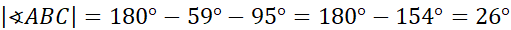 Wskaż najdłuższy i najkrótszy bok trójkąta ABC, wiedząc, że dane są w nim kąty |∢BCA| = 59°, |∢CAB| = 95°.