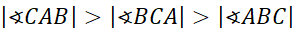 Wyznacz trzeci kąt wewnętrzny tego trójkąta, wiedząc, że w trójkącie suma kątów wynosi 180°. Następnie zauważ, że skoro największym kątem jest kąt |∢CAB|, to najdłuższy bok znajduje się naprzeciwko niego, czyli jest to bok BC. Zaś najkrótszy jest bok AC, ponieważ znajduje się naprzeciwko najmniejszego kąta |∢ABC|.