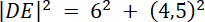 Długość EB wynosi 7,5, bo punkt E dzieli odcinek CB na dwie równe części. Wysokość w tym małym trójkącie wyniesie 6, bo środka dzieli również wysokość na pół. Podstawa powstałego trójkąta wynosi 9, więc z Pitagorasa weźmiemy jeszcze jej połowę i wtedy wyliczysz |DE|: