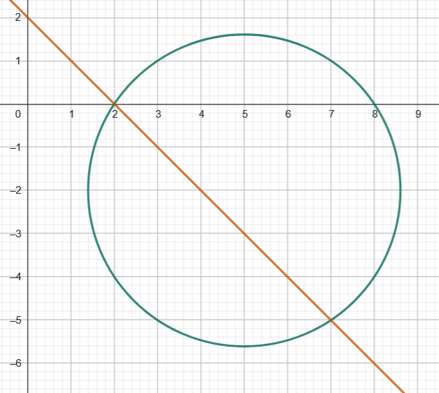 Wyznacz rozwiązanie układu równań i podaj jego interpretację geometryczną. {(x5)2+(y+2)2=13x+y2=0