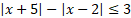 Rozwiąż nierówność, stosując zasadę rozpatrywania wartości bezwzględnej na przedziały. Wartość I zeruje się w x = -5 a druga w x = 2. Teraz ułóż 3 przedziały. W przedziale I wartość bezwzględna jest ujemna, więc zmieniamy znaki. W przedziale II wartość jest ujemna i dodatnia, więc rozwiązujemy ze zmanią znaku w pierwszej wartości bezwzględnej a w drugiej bez zmiany znaków. W trzecim przedziale obie wartości są dodatnie, więc nie zmieniamy znaków. W każdym przypadku stwórz część wspólną rozpatrywanego przedziału i wyniku. Na koniec zapisz część wspólną przedziałów I, II i III, aby otrzymać ostateczną odpowiedź.