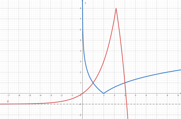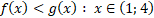 Naszkicuj oba wykresy funkcji i sprawdź, dla jakich argumentów mają ona punkty wspólne. Następnie określ przedziały, w których funkcja g znajduje się nad funkcją f.