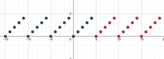 W tym zadaniu musisz ilość punktów wspólnych wykresów f i g, jeżeli funkcja f przypisuje liczbie naturalnej resztę z dzielenia tej liczby przez 5, a