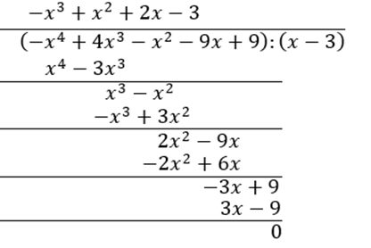 Wykonaj pisemne dzielenie wielomianu przez dwumian i skorzystaj z tego, że jeśli wielomian przy dzieleniu przez dwumian daje wynik i nie daje reszty, to wielomian jest podzielny przez dwumian .