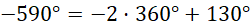 Podaj miarę kąta, który należy do przedziału (0°, 360°), który pokrywa się z kątem -590°.