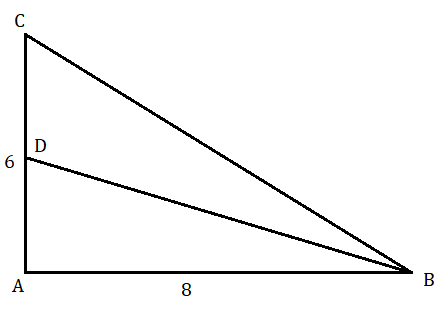 Zacznij od obliczenia długości przeciwprostokątnej trójkąta za pomocą twierdzenia Pitagorasa. Następnie ułóż równanie wynikające z twierdzenia o podziale boku dwusiecznej wewnętrznego trójkąta. Za jego pomocą wyznacz zależność długości odcinków AD i DC. Wiedząc, że |AD| + |DC| = |AC| = 6, oblicz długość odcinka |DC|, a następnie na jego podstawie długość |AC|.