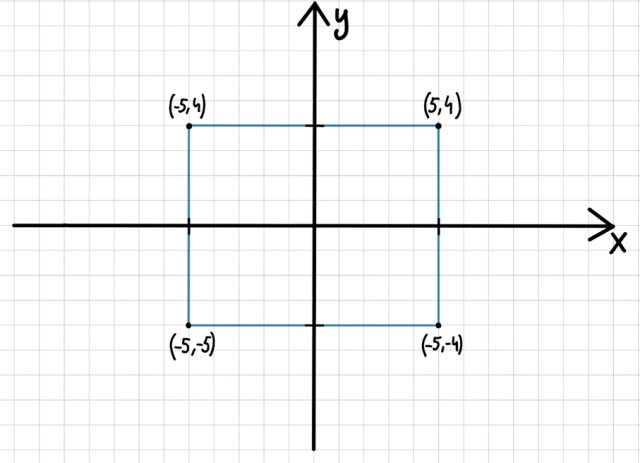 Prostokąt, wierzchołki: (5, -4), (5, 4), (-5,-4) i (-5,4)