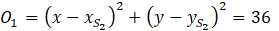 ma współrzędne ujemne. Na koniec wylicz odległość między środkami.