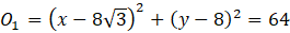 Najpierw zauważ, że jeden punkt O_1 leży na osi OX więc jego "y" równa się O. Podstaw ten punkt do równania okręgu. Następnie oblicz punkt należący do prostej
