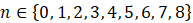 Najpierw uporządkuj zbiór bez wartości n. Zauważamy, że po lewej stronie znajdują się 2 liczby, a po prawej 3 liczby (względem „8”). Stąd wynika, że należy dopisać liczbę mniejszą lub równą 8.