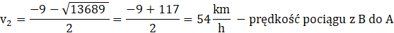 | Prędkość średnia [km/h] | Czas przejazdu do miejsca spotkania [h] | |
