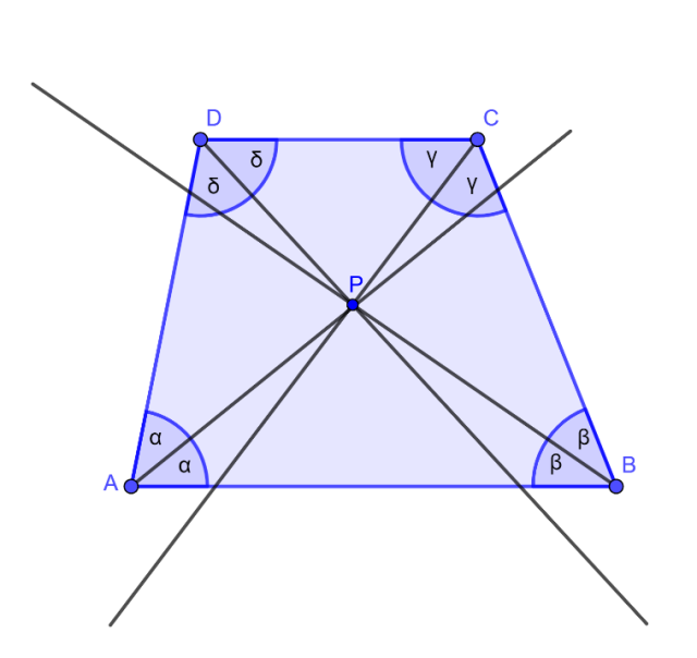 Dwusieczne wszystkich kątów wewnętrznych trapezu przecinają się w punkcie P.