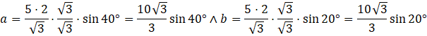 Zapisz twierdzenie sinusów jako dwa wzory, każdy osobno dla jednego boku.