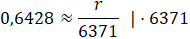 Wartość tego sinusa możesz odczytać z tabeli wartości funkcji trygonometrycznych. Podstaw wartość tego sinusa oraz promień Ziemi do wzoru: