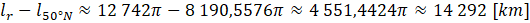 Gdzie: R – promień ziemi, r – szukany promień koła ograniczonego przez równoleżnik 50°N.