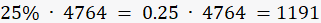 Dzięki wsparciu sponsorów liczba książek w pewnej bibliotece wzrosła w tym roku o 25% w porównaniu z poprzednim rokiem. Na koniec ubiegłego roku biblioteka posiadała 4764 woluminy. Jak wiele książek zostało zakupionych dzięki sponsorom?