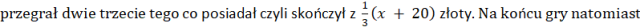 Niech x to będzie gotówka na początku gry. W toku gry N. A. Iwniak Wygrał 20 zł, następnie