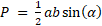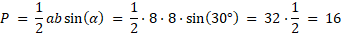 , gdzie α jest kątem zawartym między bokami a i b. W tym przypadku oba wynoszą 8. Pole trójkąta prostokątnego jest dwa razy mniejsze.