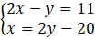x = 2y – 20 = 2 ∙ 17 – 20 = 34 – 20 = 14