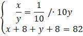 Na początku musisz oznaczyć symbolami wiek wnuczka i dziadka. Następnie musisz zapisać pierwsze równanie, w którym iloraz wieku wnuczka do wieku dziadka jest równy
