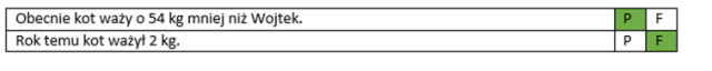 | Obecnie kot waży o 54 kg mniej niż Wojtek. | P | F |