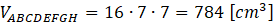 Graniastosłup prawidłowy czworokątny ABCDEFGH o krawędzi podstawy 7 cm i wysokości 16 cm został przecięty płaszczyzną IJKL tak, że GK = HL = 3 cm oraz AL = BJ = 10 cm. Oblicz objętość nowo powstałych brył.