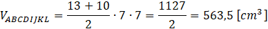 Zacznij od obliczenia objętości ABCDEFGH. Kolejno oblicz objętość ABCDIJKL, a następnie objętość IJKLEFGH poprzez odjęcie od objętości ABCDEFGH objętości ABCDIJKL.